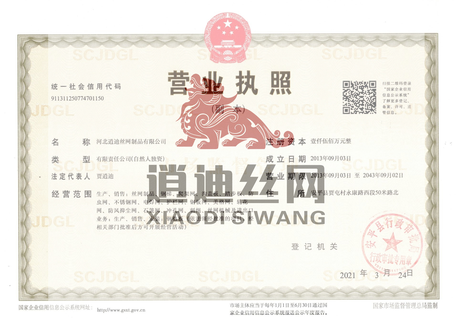 河北逍迪絲網(wǎng)制品有限公司誠信天下,誠信是我們公司一個(gè)原則問題不可撼動(dòng)的,以心中有誠信的思想結(jié)交五湖四海的朋友,能達(dá)到雙贏是最好的,我們堅(jiān)信朋友多了路好走,我們公司都是老朋友多,我們一直是這樣做的。河北逍迪絲網(wǎng)制品有限公司成立于2013年注冊資本壹仟伍佰萬整,主要生產(chǎn)沖孔網(wǎng),鋼格板,金屬防蟲網(wǎng),如實(shí)的實(shí)體廠家,是一家-研發(fā)-銷售-生產(chǎn)-安裝-售后一條龍公司,2019年通過了ISO 9001認(rèn)證管理體系符合GB/T 19001-2016/ISO 9001:2015標(biāo)準(zhǔn),同時(shí)通過了SGS認(rèn)證,擁有商標(biāo)版權(quán)2品牌,擁有一個(gè)著作版權(quán),河北逍迪絲網(wǎng)制品有限公司位于中國有名的(絲網(wǎng)之鄉(xiāng))安平縣,于天津,北京,雄安,石家莊相鄰,交通非常發(fā)達(dá),出口可以選擇天津港口非常近每天都有接貨送貨往返車輛,空運(yùn)可以選擇石家莊正定機(jī)場,附近也有鐵路運(yùn)輸,當(dāng)?shù)剡€有兩個(gè)生態(tài)物流園區(qū)發(fā)往全國各地,我們沖孔網(wǎng)工廠生產(chǎn)設(shè)備有:普通沖壓機(jī),高速?zèng)_壓機(jī),自主研發(fā)小微孔沖壓機(jī),龍門沖,磚塔沖孔,重型沖孔機(jī),萬瓦級別激光切割機(jī),3000W激光切割機(jī),焊接設(shè)備,折彎機(jī),校平機(jī),剪板機(jī),精密校平機(jī),(對板面平整度要求苛刻的客戶群體0.5-0.2誤差)我們公司銷售市場沒有局限性國內(nèi)國外都供應(yīng),擁有出口權(quán)...